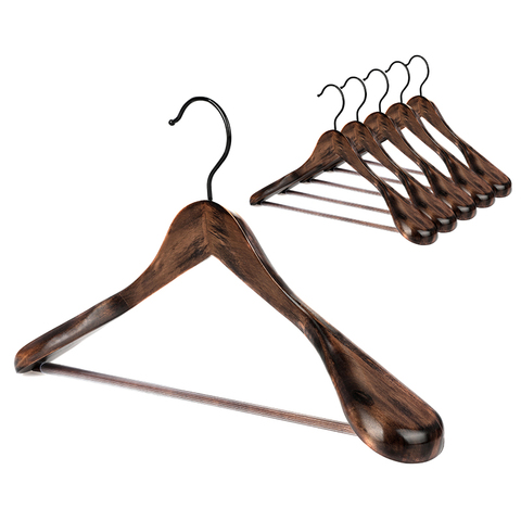 Custom Logo Premium Vintage Extra-Wide Shoulder Antique Wooden Cloths Hangers